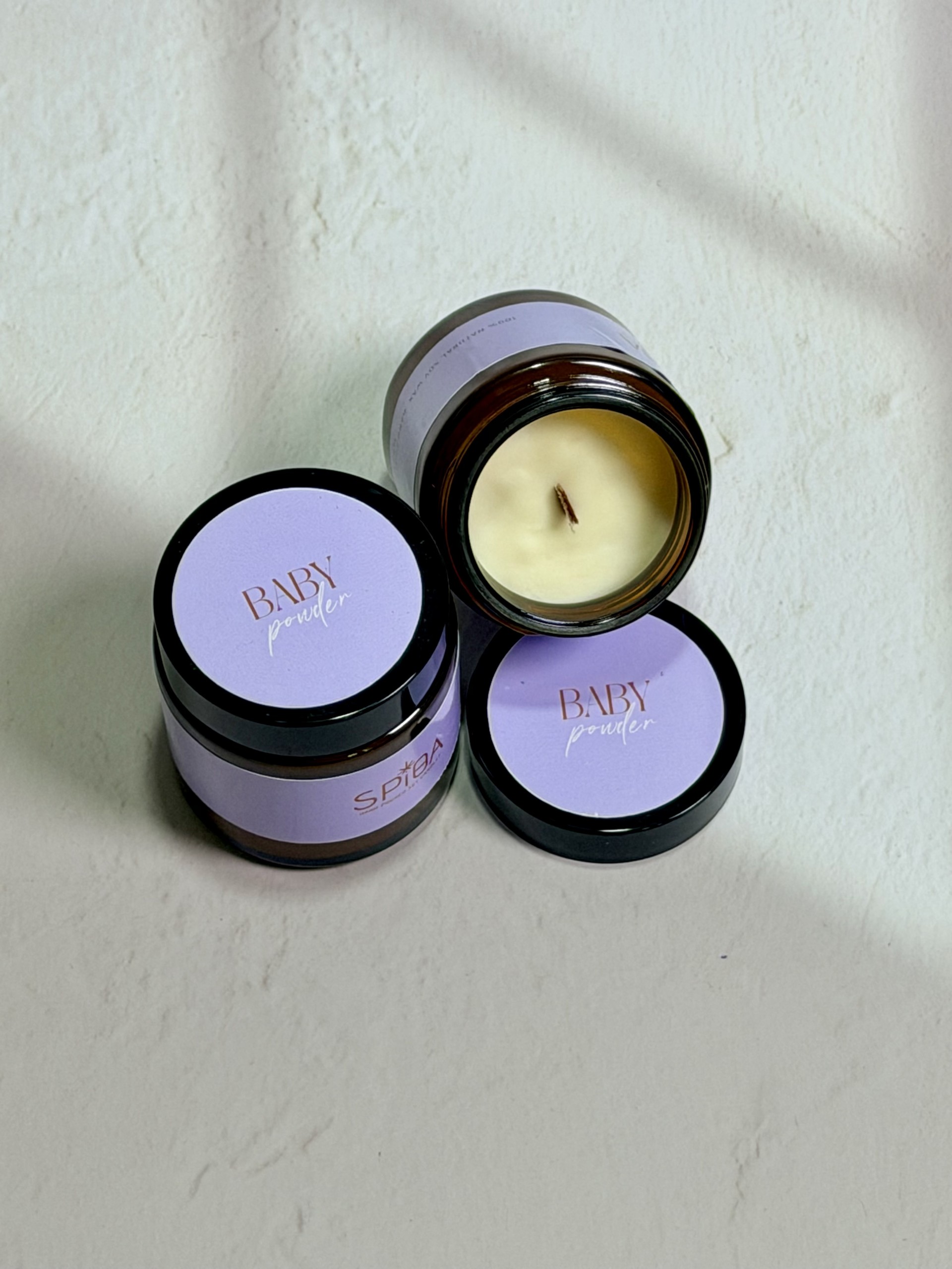 Φυτικό κερί σόγιας με άρωμα baby powder . Το πιο ωραίο άρωμα πούδρας που έχεις μυρίσει .