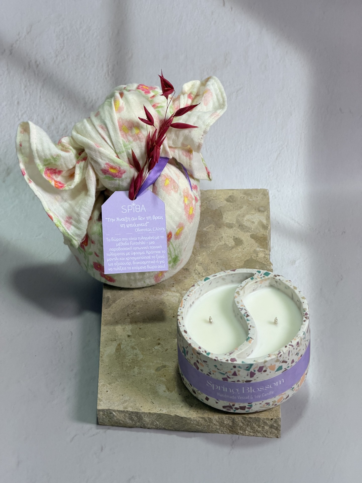 spring blossom-luxury αρωματικό κερί σόγιας με υφασμάτινη συσκευασία -limited edition