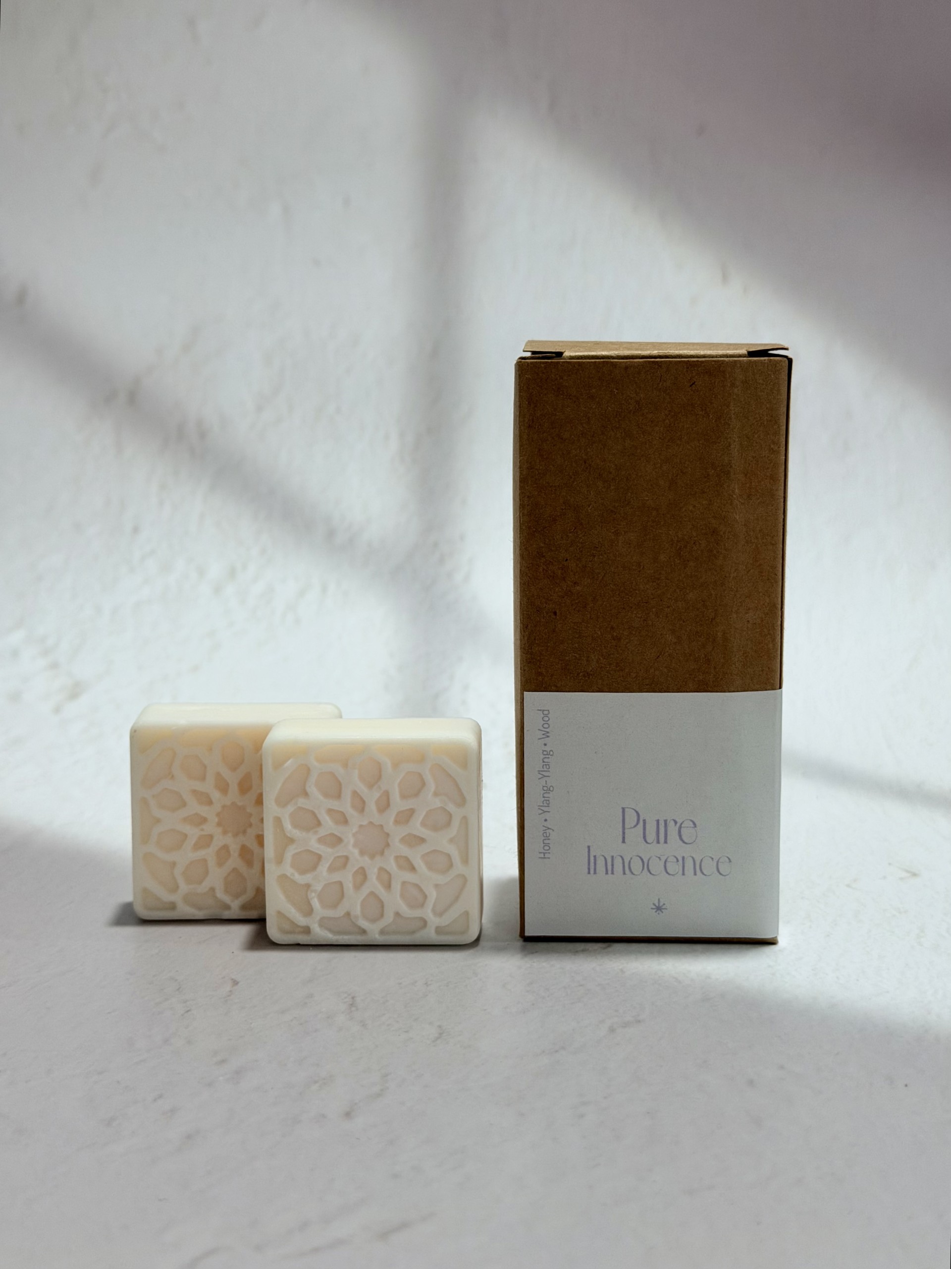 6 αρωματικοί κύβοι από φυτικό κερί ελαιοκράμβης σε ανακυκλώσιμο χαρτινο κουτί. Κάθε κύβος διαρκεί για 6-8 ρεσώ.